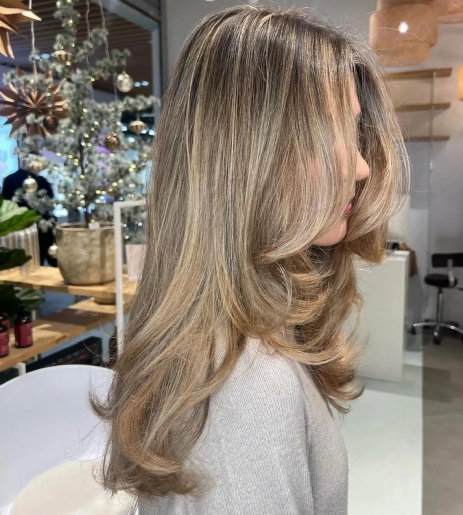 Face-framing fringe with long hair blends bangs with longer pieces around the face. This style highlights facial features while keeping hair flowing and soft. It feels glamorous yet natural, which is why so many people save it for inspiration.