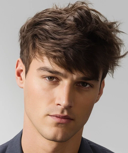 Feathered fringe creates soft, airy bangs that sweep gently across the forehead. The lighter texture gives hair movement and a soft finish. This look feels romantic, delicate, and timeless — ideal for people who want fringe without heaviness.