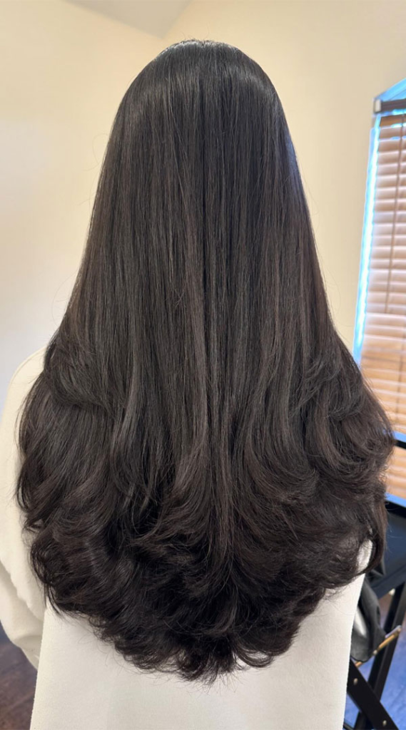 Long straight hair feels very refined when it has shine and smooth texture. The key to this polished look is healthy hair — using products that add moisture and gloss helps hair reflect light beautifully. This style feels simple yet elegant, making it great for both everyday life and evening events.